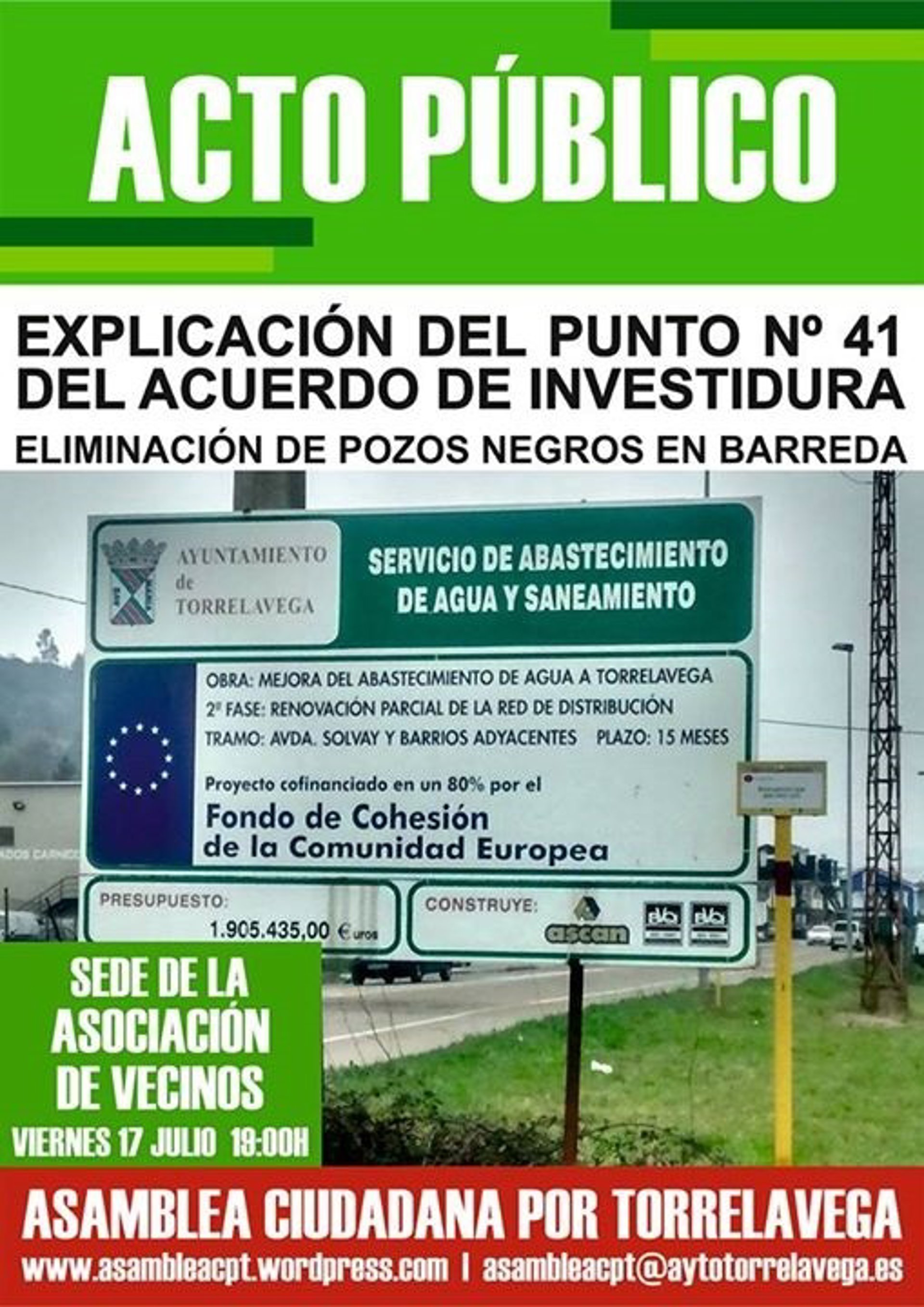 Asamblea Ciudadana por Torrelavega (ACPT) informará a los vecinos de Barreda afectados por la situación de los pozos negros el acuerdo alcanzado con el equipo de Gobierno PSOE-PRC sobre esta cuestión.