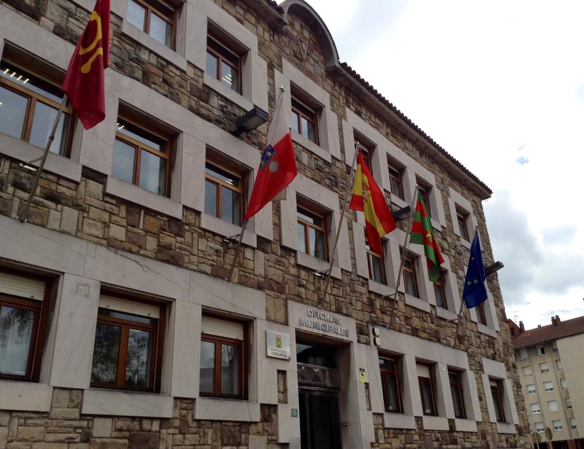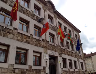 Los edificios del Palacio Municipal y los Antiguos Juzgados del Ayuntamiento de Torrelavega cuentan desde este jueves con el lábaro ondeando en sus fachadas junto al resto de banderas oficiales.