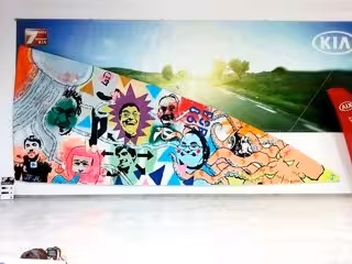 El 4 de enero cerca de 40 niños pertenecientes a la Obra San Martín y Ampros, además de los hijos de los tripulantes del J80 y de Numar Motor, se pusieron manos a la obra junto a los dos artistas cántabros Javier Trugeda y Joaquín P. García-Maestro, todos bajo la dirección de la pintora cántabra Gloria Torner, para crear esta obra de arte que ha partido de una vela de dacron de 17,42 metros usada en competición.