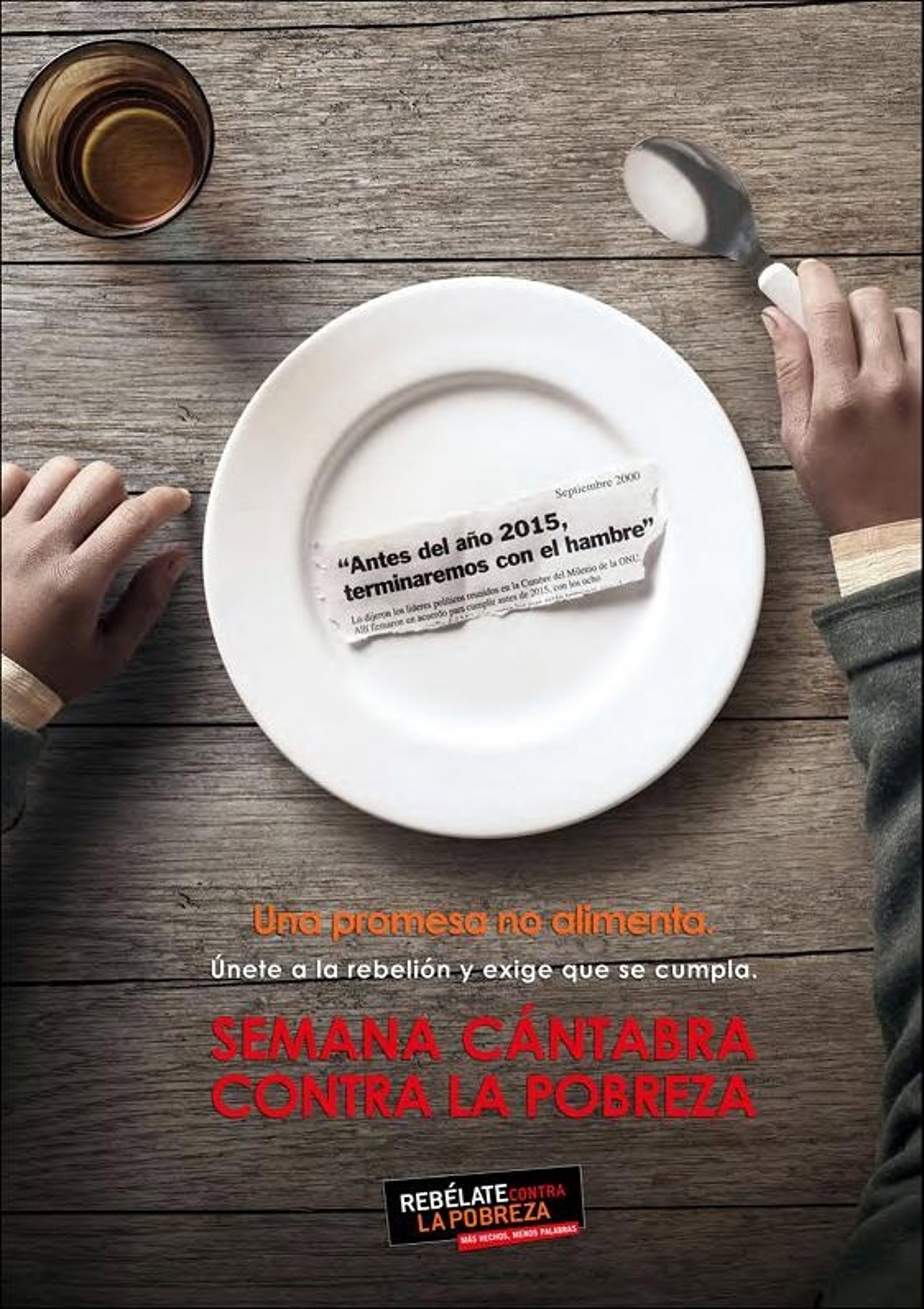 La Alianza Cántabra contra la Pobreza, esta integrada por colectivos sociales - sindicatos, ONGD y organizaciones ecologistas, juveniles, de mujeres, colectivos y movimientos ciudadanos - y promueve una gran movilización ciudadana para presionar a la clase política, a los gobiernos e instituciones para que comprometan sus políticas y sus programas electorales con la erradicación de la pobreza y cumplan sus compromisos en relación a los Objetivos del Desarrollo del Milenio (ODM).