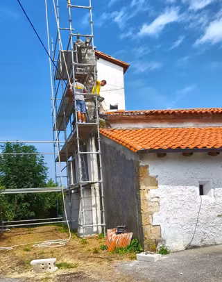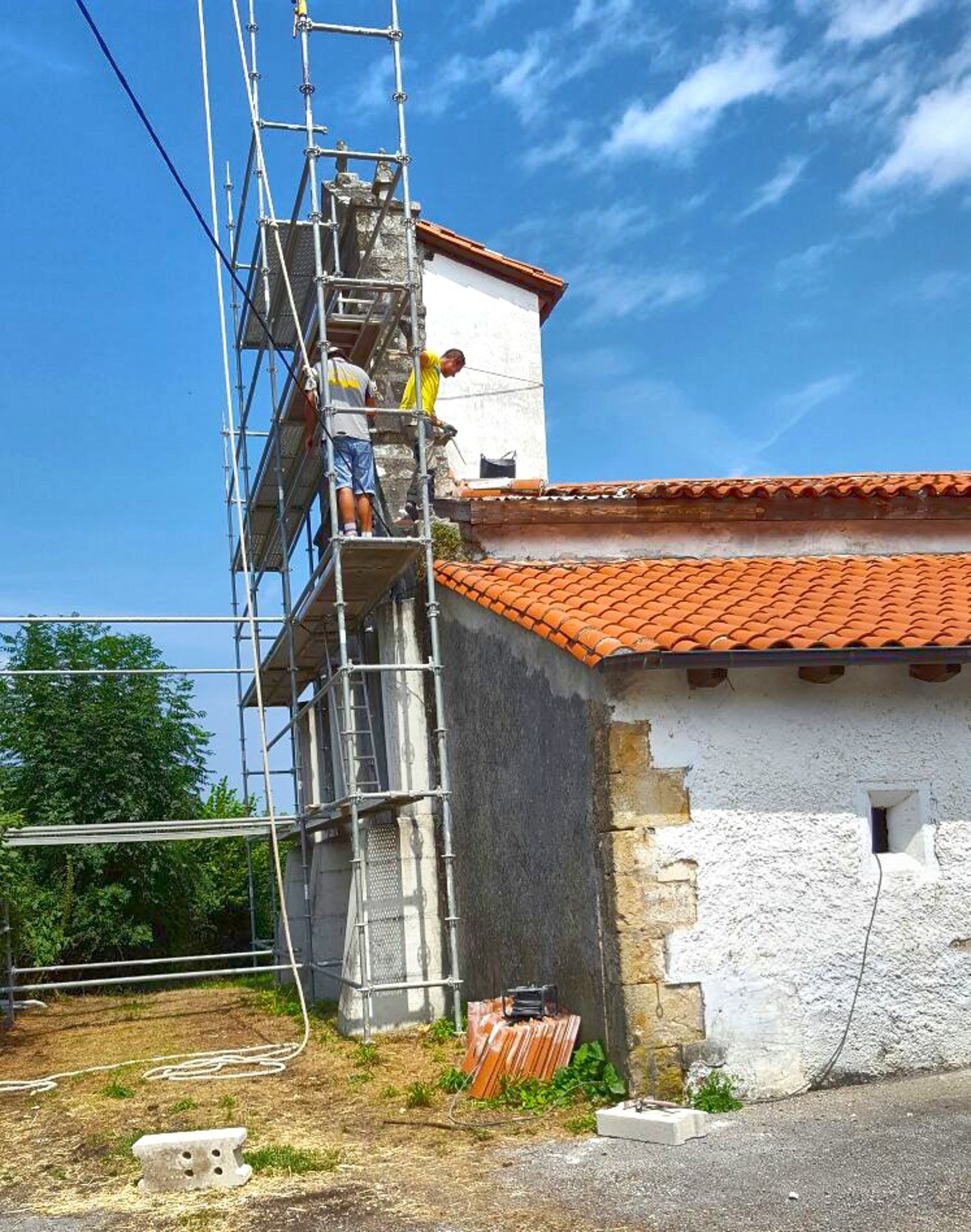 Los trabajos que se están realizando consisten en la retirada de la espadaña, con el objetivo de hacer un cincho de hormigón y de esta manera evitar las grietas que estaban formando en el interior.