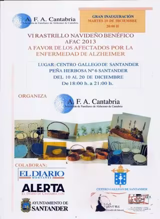 La Asociación de Familiares de Alzheimer de Cantabria (AFAC) inaugura este martes, 10 de diciembre, a las 20.00 horas, en el Centro Gallego de Santander, su rastrillo navideño.