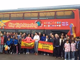 Seguidores, familiares y representantes del Ayuntamiento santanderino se han desplazado hasta el aeropuerto de Parayas en el autobús turístico.