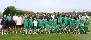 Al término de la sesión de trabajo, los niños inscritos en el Campus de Verano se fotografiaron con los profesionales, a los que también solicitaron numerosos autógrafos y pidieron consejo para mejorar su habilidad con el balón.
