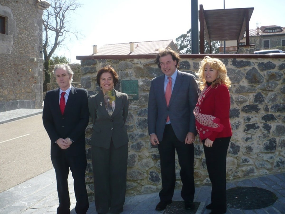 Los directores generales de Cultura y Turismo, Joaquín Solanas y Francisco Agudo; el presidente de la Asociación de Hostelería de Cantabria, Emérito Astuy; y el coordinador del Ecoparque de Trasmiera, Ramón Meneses, también han estado presentes en este acto que se ha celebrado en el caso histórico de Isla, donde se ha colocado una placa con la distinción.