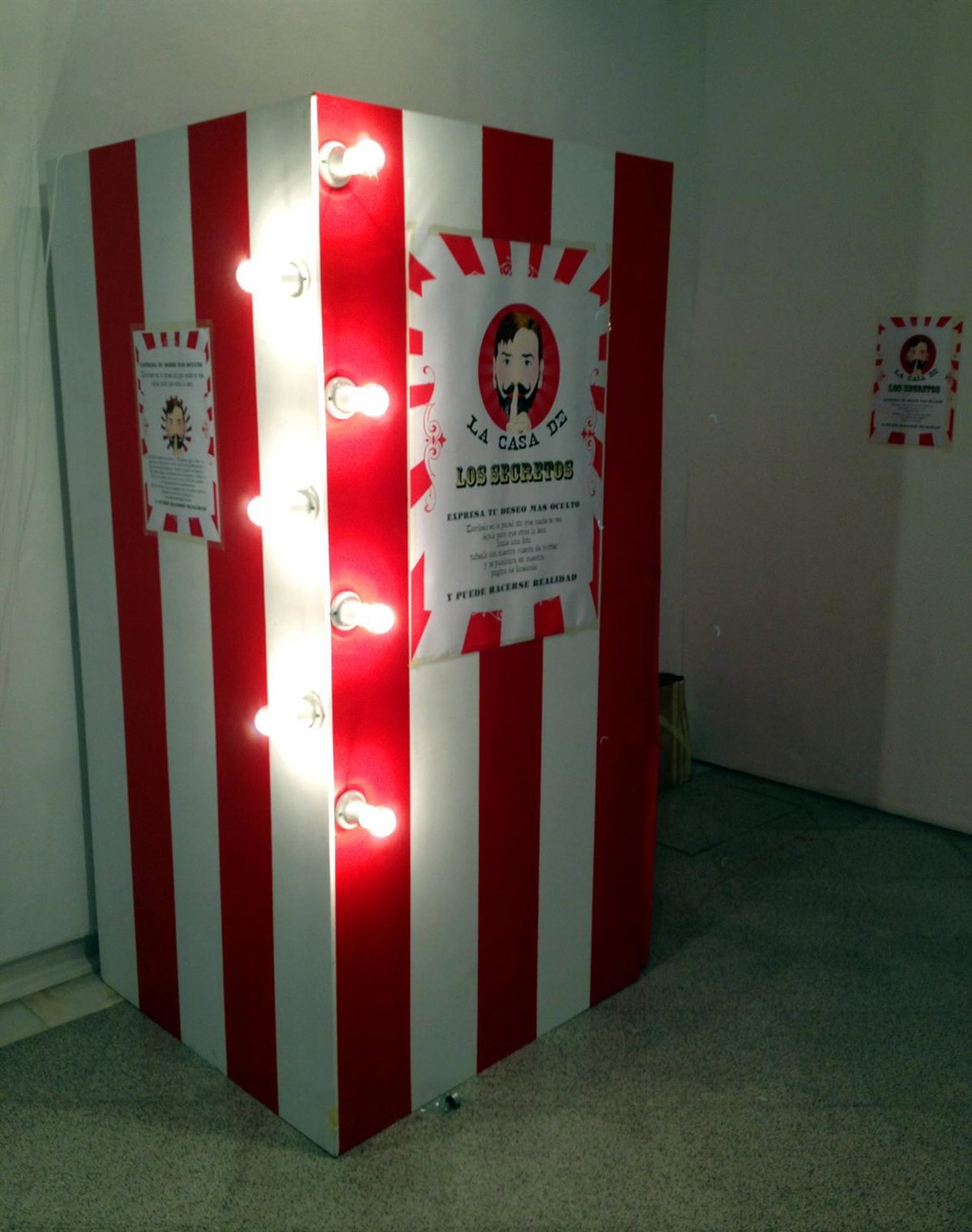 Pablo Burgos presenta para este V certamen la obra titulada 'La casa de los secretos', una instalación audiovisual con carácter interactivo y lúdico, que pretende ser un microespacio de liberación, donde poder exponer "nuestras ficciones, especulaciones, ideologías o meditaciones, intentando de esta manera, hacernos conscientes de las estrategias de confinamiento existentes en el espacio público actual".