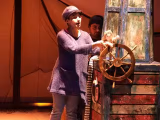 Títeres, una actriz y un músico dan vida a esta historia que empieza con una niña muy especial, Nora, en una playa llena de imaginativos objetos.