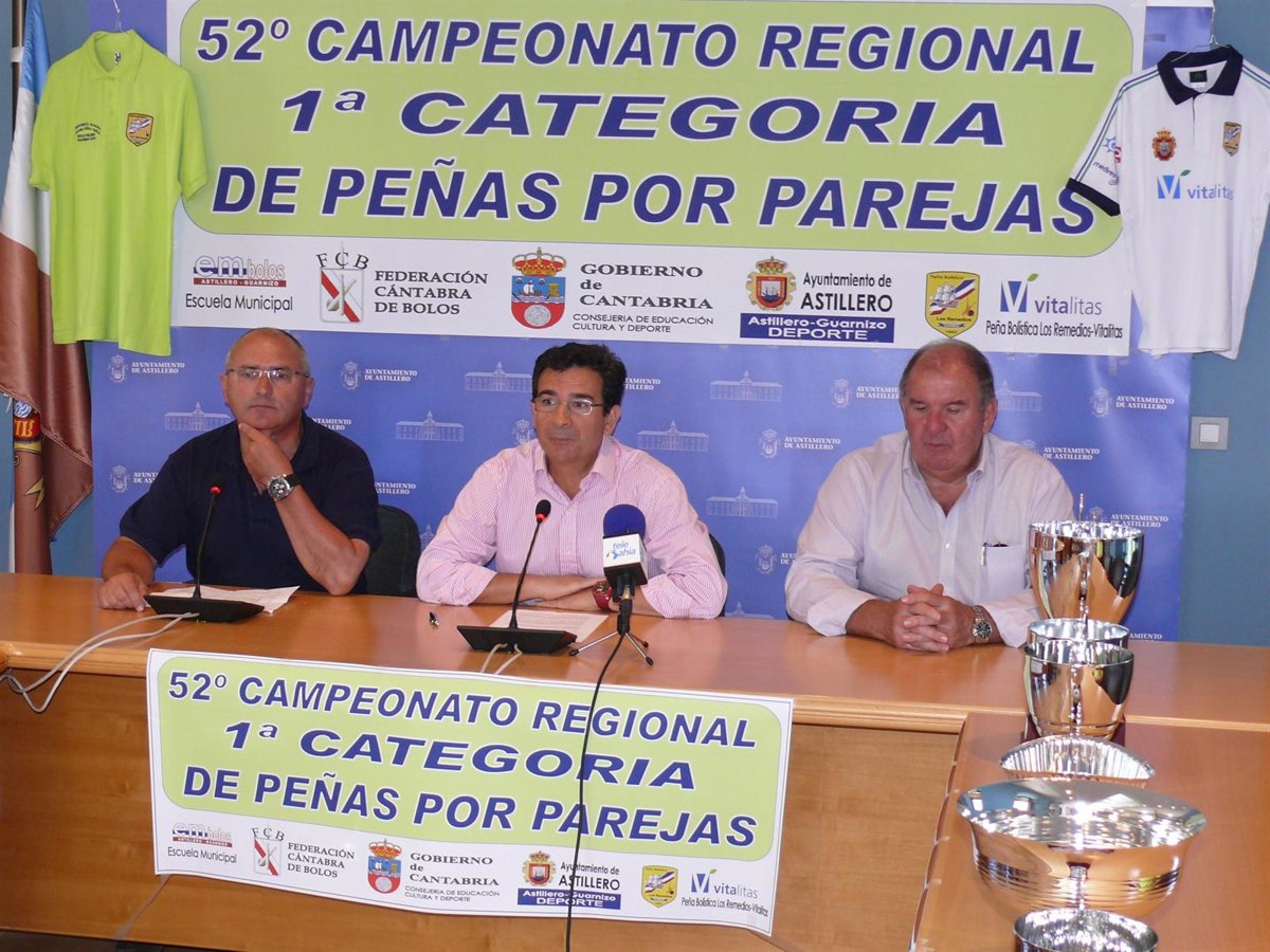 El alcalde, Carlos Cortina; el presidente de la Federación Cántabra de Bolos, Fernando Diestro; el presidente de la peña organizadora Vitálitas-Los Remedios, José Manuel Díaz, han presentado este miércoles en rueda de prensa esta competición regional.