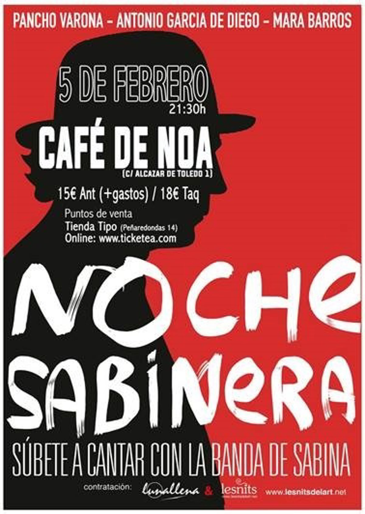 El Café de Noa, en Santander, acogerá el próximo viernes 5 de febrero una 'Noche sabinera' con Pancho Varona, Antonio García de Diego y Mara Barros.