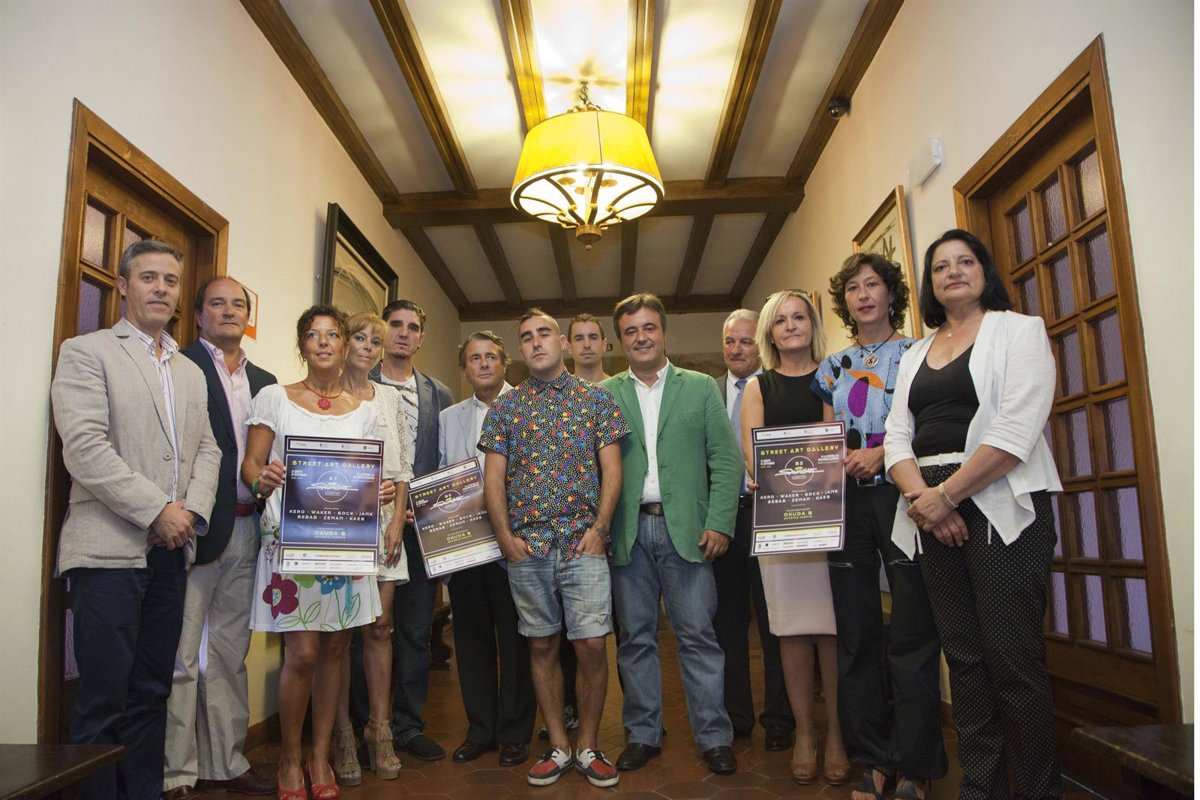 El alcalde de Camargo, Diego Movellán, el gerente de la empresa, Fermín Rodríguez, los directores generales de Cultura y Comercio del Gobierno de Cantabria, Joaquín Solanas y Ana España, respectivamente, el presidente de la Cámara de Comercio, Modesto Piñeiro, Pedro Román, de CEOE Cepyme, Gema Díaz, concejala de Empleo del Ayuntamiento de Santander, y Pilar Vinsac, de la Escuela de Diseño Vinsac, han participado en la rueda de prensa de este primer festival de arte urbano junto a 'Okuda', uno de los artistas cántabros con más actividad internacional en esta disciplina.
