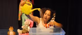 Recomendado para niños de más de 4 años y con una duración de 40 minutos, la obra de Teatro del Andamio, 'Miau', está protagonizada por Lola, una niña que ríe, juega sola y con Gonza, su amigo, con Nemo y, sobre todo, con Valen, la hermana que aún no ha nacido.