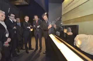 El alcalde de Santander, Iñigo de la Serna; el director territorial de La Caixa en Cantabria y el País Vasco, Juan Pedro Badiola; y el comisario y arqueólogo, Luis Batista, han inaugurado este miércoles esta exposición en la que destacan las reproducciones científicas de obras de arte de esta civilización.