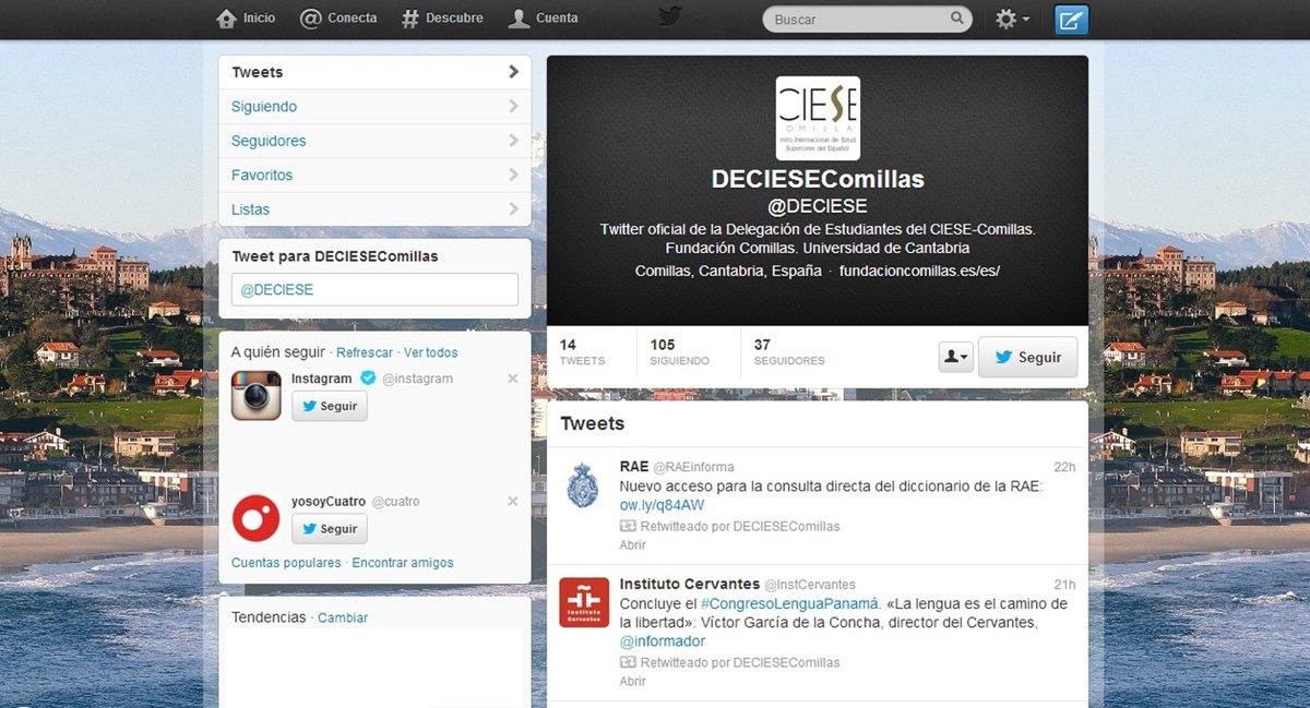La Delegación de Estudiantes del Centro Internacional de Estudios Superiores del Español (CIESE-Comillas) acaba de crear un perfil exclusivo en la red social Twitter.