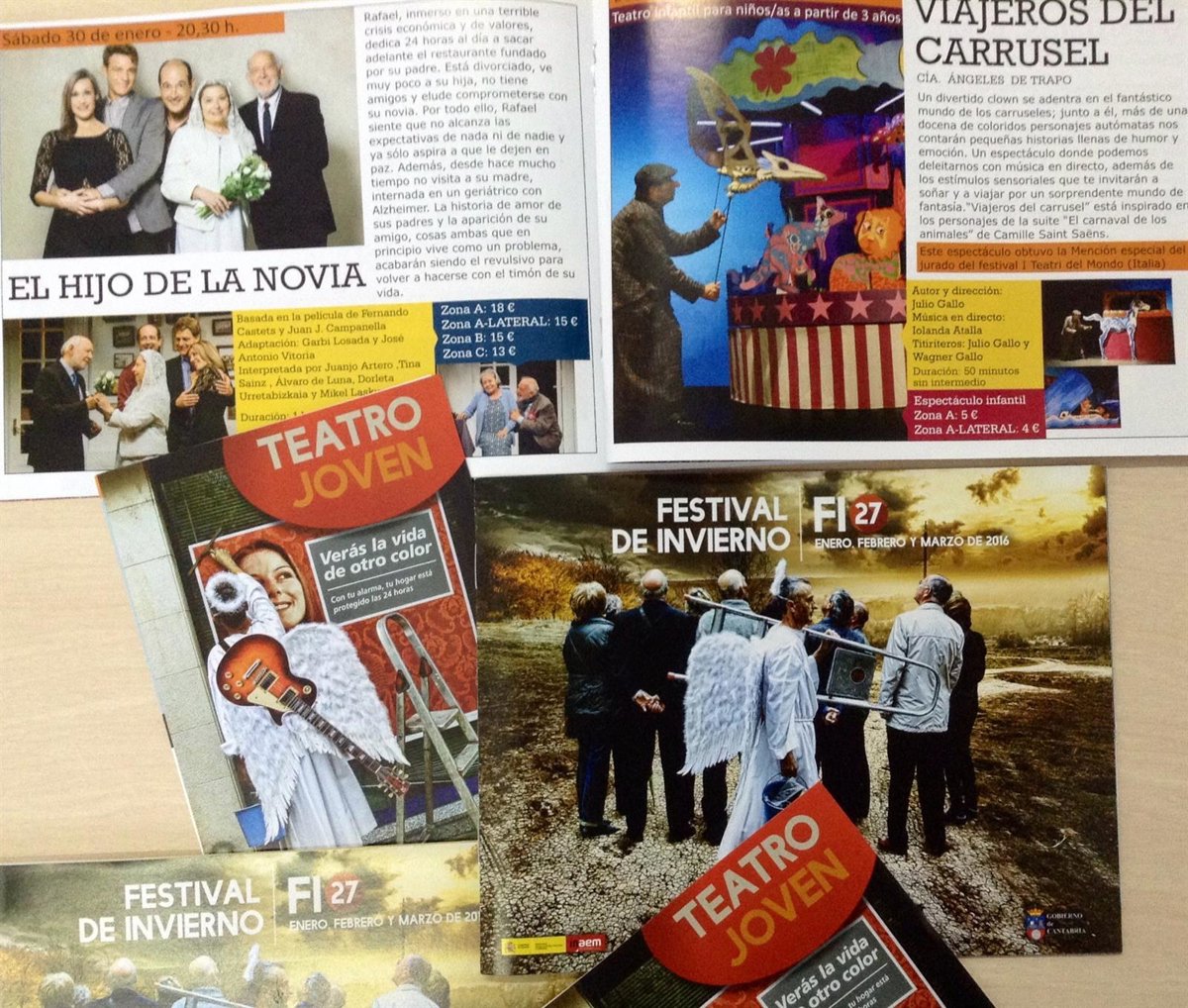 El sábado, el Festival de Invierno ofrece 'El hijo de la novia' con Juanjo Artero, Tina Sainz, Álvaro de Luna, Dorleta Urretabizkaia y Mikel Laskurain, basada en la película de Fernando Castets y Juan J. Campanella, y adaptada por Garbi Losada y José Antonio Vitoria. El precio de las entradas será de 18 euros para la Zona A, Zona A-Lateral y Zona B 15 euros, y Zona C 13 euros.