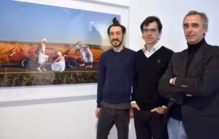 El concejal de Cultura, César Torrellas, el director del Museo de Arte Moderno y Contemporáneo de Santander, Salvador Carretero y el artista Luis Bezeta han presentado este viernes la obra fotográfica 'Norma Jeane es Marilyn' que ya se expone en el MAS.