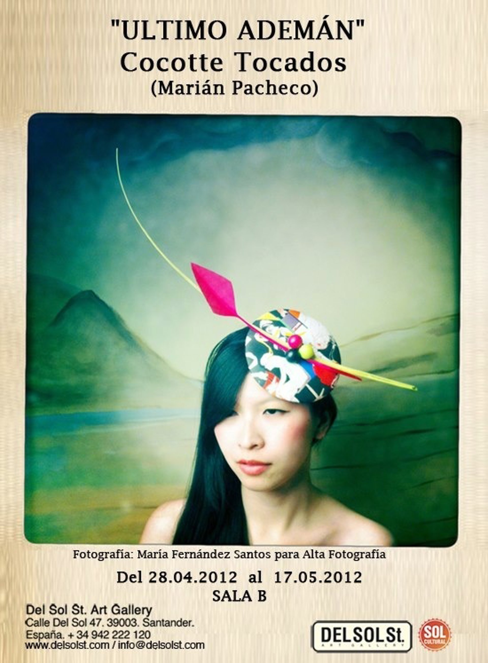 Paralelamente, en la Sala B se inaugurará la exposición 'Último ademán' de Cocotte Tocados, donde la joven creadora Marián Pacheco mostrará sus últimas creaciones en este ámbito, con tocados a modo de esculturas. Pacheco, licenciada en Bellas Artes por la Universidad del País Vasco y apasionada de la moda, comenzó su carrera profesional de la mano de su amigo el modista Luis Alonso.
