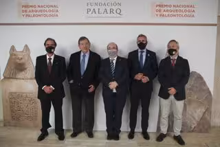El ministro de Cultura y Deporte, Miquel Iceta, y el presidente de la Fundación Parlaq, Antonio Gallardo, fueron los encargados de entregar el premio a los investigadores en un acto celebrado en el Museo Arqueológico Nacional y al que también asistió el vicepresidente de Cantabria, Pablo Zuloaga.