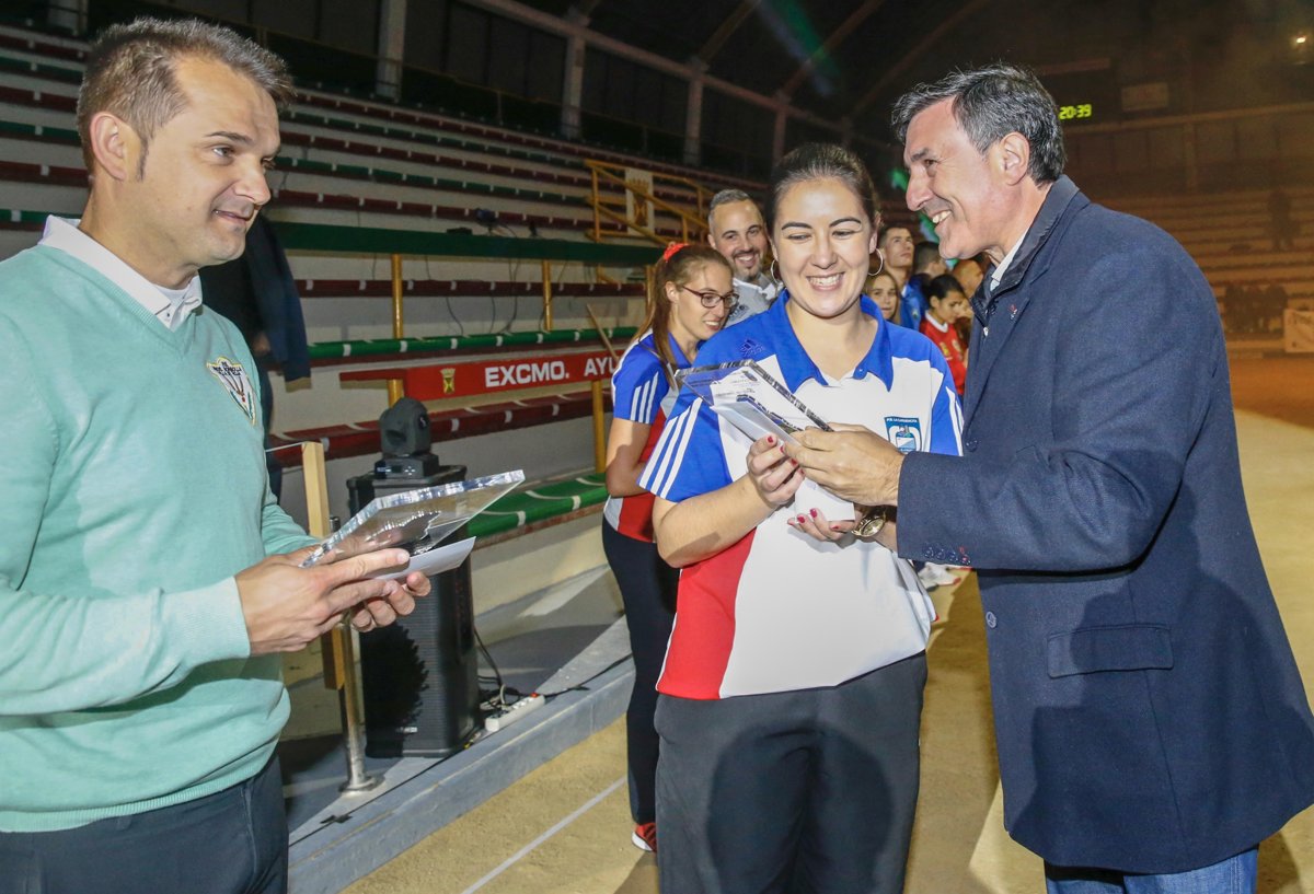 El consejero, Francisco Fernández Mañanes, acompañado de la directora general de Deportes, Gloria Gómez, asistió a la bolera Severino Prieto de Torrelavega a la final del Concurso en la que se alzó con el triunfo la pareja formada por Judith Bueno y Óscar González.