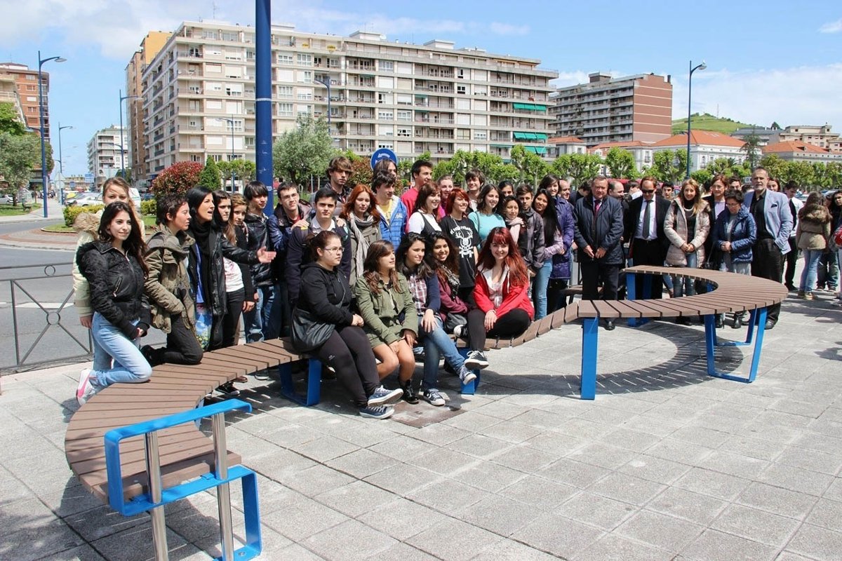 El alcalde de Laredo, Ángel Vega, junto a varios concejales y la comunidad educativa del instituto, ha participado este martes en la inauguración de "esta obra de arte que pasa a formar parte del mobiliario urbano" de la villa, según ha informado el Ayuntamiento de Laredo.