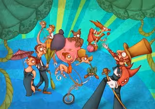 Iván Cosmos y Moscónni Zanzinni, al más puro estilo showman, presentan un espectáculo cargado de humor, riesgo y circo. Rutinas entrelazadas con monociclos jirafas, cajas de puros, sombreros, mentalismo y participación del público.