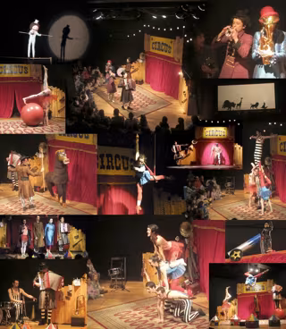 Dentro de un amalgama de lenguajes (marionetas, sombras, circo, teatro, etcétera) se propone al público a un viaje por la historia del circo, desde su inspiración en los antiguos juegos egipcios, griegos y romanos, así como en malabaristas y trovadores de la Edad Media, hasta la primera actuación de un circo moderno en Londres en 1768, pasando por los años de oro de este espectáculo, la decadencia y su renacimiento en los 70 con la aparición del 'nuevo circo'.