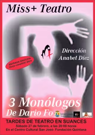 Los integrantes de Miss+Teatro, bajo la dirección de Anabel Díez, llevan este sábado, 27 de febrero, al ciclo 'Tardes de teatro en Suances', una adaptación de tres monólogos de Darío Fo.