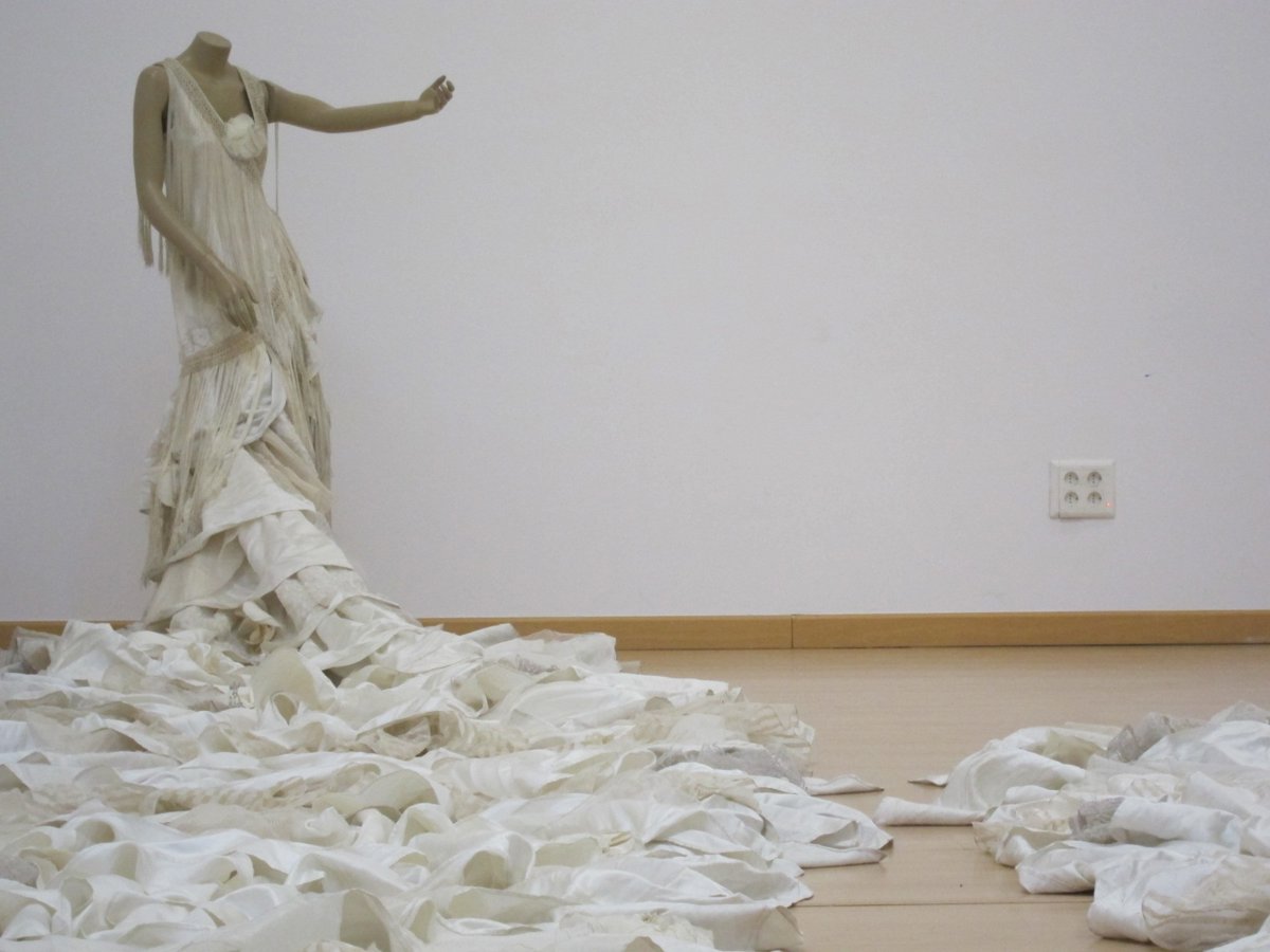 Así, se puede contemplar un vestido Victorio & Lucchino con una cola de 17 metros de largo, lo que mide la diagonal del escenario de la Sala Argenta y creado para el espectáculo 'Tras el espejo' de Víctor Ullate, estrenado en 1995.
