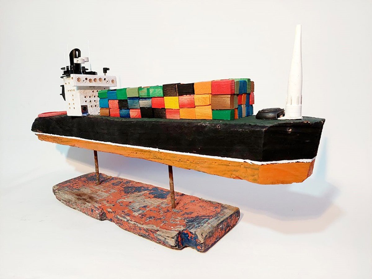En la actualidad concentra su creatividad en esculturas de veleros, barcos de pesca, remolcadores y cargueros que forman parte de su "flota" artística también empleando materiales de deriva.