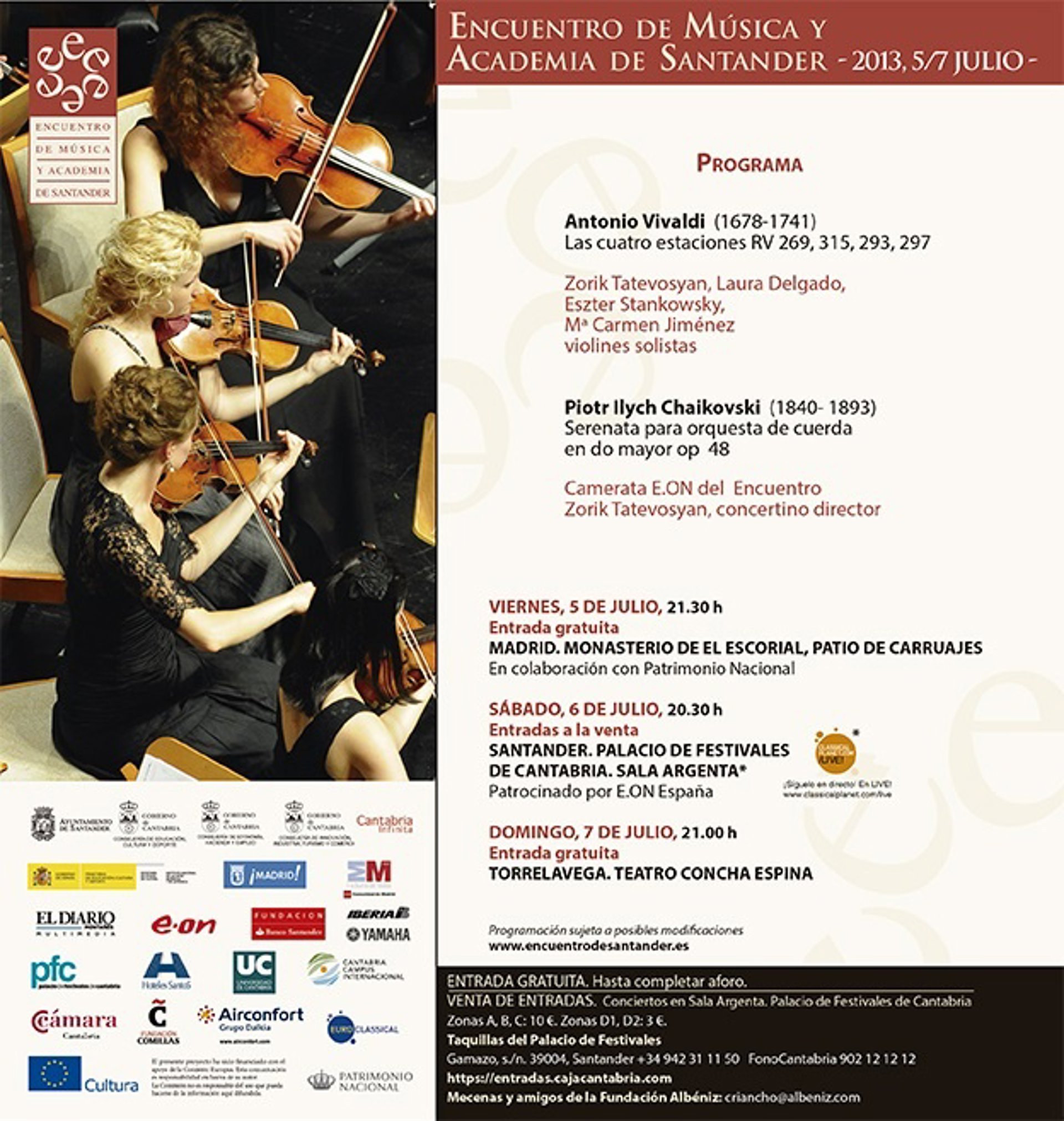 El Encuentro de Música y Academia incluye hoy la actuación de la Camerata E.ON y el violinista Zorik Tatevosian, que tocará 'Las cuatro estaciones' de Vivaldi y la 'Serenata para cuerdas' de Chaikovsky.