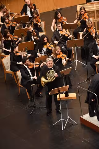 Seguidamente será Peter Csaba quien dirija al Ensemble de Vientos del Encuentro para interpretar Lied y Scherzo para trompa solista y 9 instrumentos de viento op.54 de Schmitt, con Radovan Vlatkovic como trompa solista.
