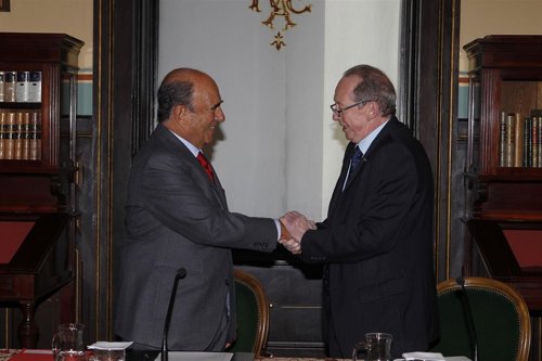 José Manuel Blecua, director de la Real Academia Española (RAE), y Emilio Botín, presidente de Banco Santander, han suscrito este jueves un convenio que renueva la colaboración entre ambas entidades, iniciada en 2007, y que se mantendrá hasta 2014.