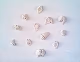 Desde los retratos en óleo del italiano Bordiga, hasta obras en las que se desarrolla un concepto como son las dos presentadas por Emeric Minaya: 'The galerist' un óleo sobre lienzo ocupado enteramente por la cabeza de Manolo Messía en grises y negro, y 'The artists', un lienzo blanco con manos en escayola (la parte del cuerpo con la que el artista trabaja) y cuyos moldes han sido las manos de los 12 artistas residentes esta edición.