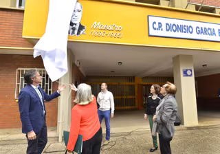 A continuación, se ha descubierto una imagen de García Barredo en la fachada frontal del edificio, junto al nombre del centro, y que se acompaña de las fechas de su nacimiento y fallecimiento, 1895 y 1965, y de la palabra 'maestro'.