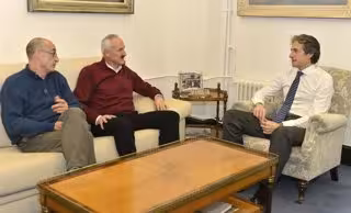 El alcalde de Santander, Íñigo de la Serna, se ha reunido este miércoles con el presidente del Racing de Santander, Tuto Sañudo, y su vicepresidente, Felix Álvarez, a los que ha felicitado por el "nuevo rumbo" que, a su juicio, están dando al club.