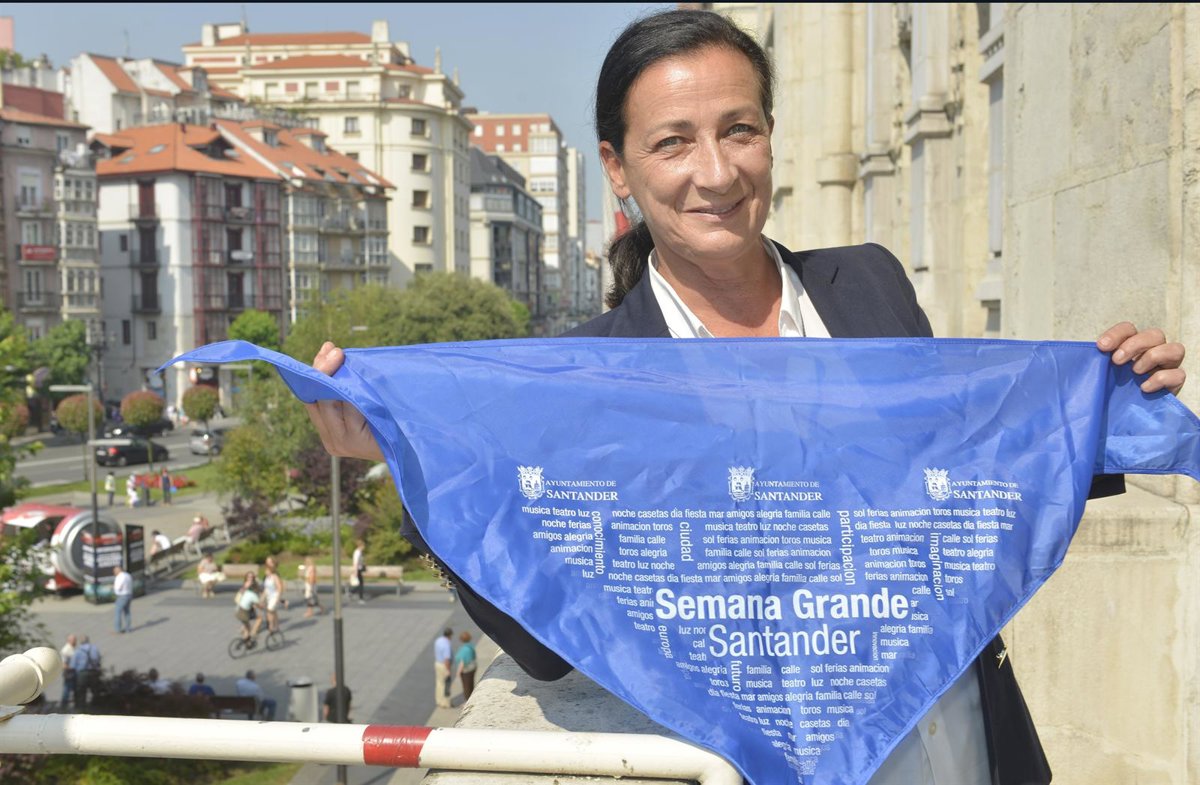 Carmen Ruiz con el pañuelo de la Semana Grande