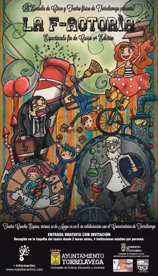 Los alumnos de la novena edición de la Escuela de Circo de Torrelavega, como colofón al curso, presentarán al público su espectáculo 'La F'actoria', en el Teatro Concha Espina de Torrelavega este próximo viernes 10 de mayo a las ocho de la tarde.