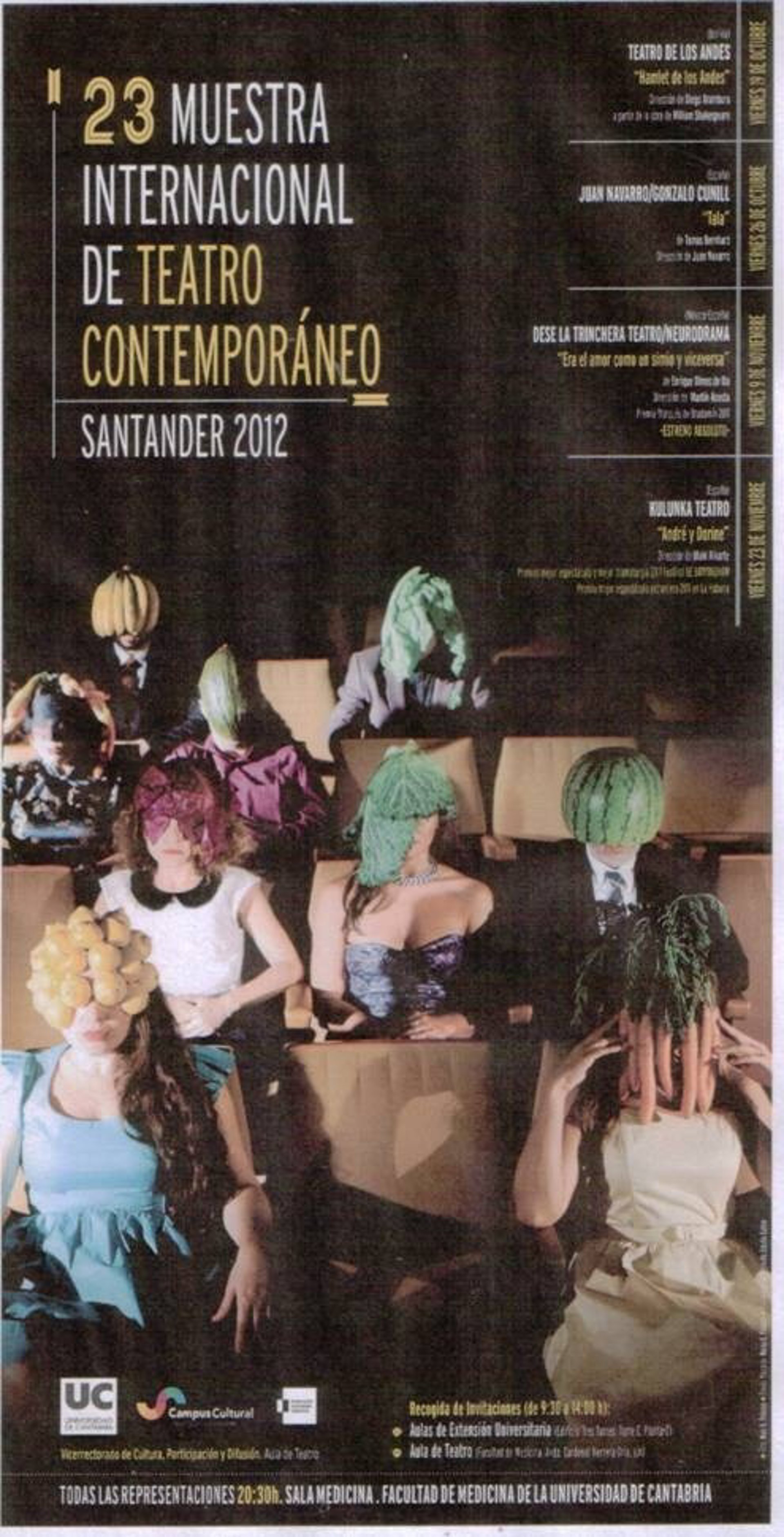 La Universidad de Cantabria acogerá entre el 19 de octubre y el 23 de noviembre la 23 Muestra Internacional de Teatro Contemporáneo 'Santander 2012', que incluye cuatro representaciones de España, Bolivia y Méjico.
