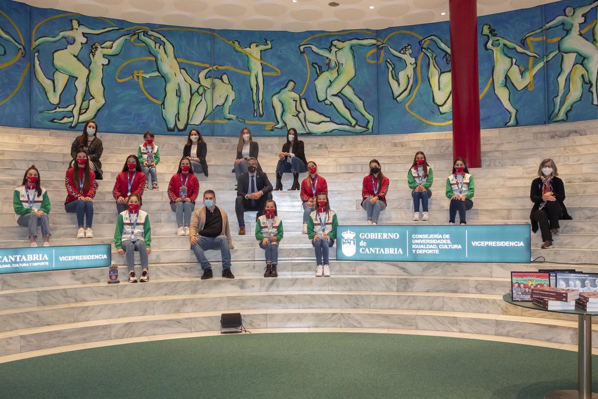 El vicepresidente y consejero de Universidades, Igualdad, Cultura y Deporte, Pablo Zuloaga, ha recibido al equipo EDM Torrelavega de gimnasia rítmica tras hacer historia en la Copa de España de Conjuntos Base celebrada del 15 al 22 de noviembre en Valencia al lograr la medalla de oro en la categoría juvenil y la de bronce en infantil.