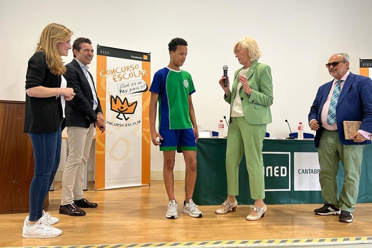 El alumno Alae Arce Cubiles del colegio Kostka de Santander ha sido el ganador de la fase autonómica de la 42 edición del concurso '¿Qué es un Rey para ti?' y participará en la audiencia con Felipe VI, junto con los demás ganadores del resto de comunidades.