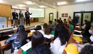 Los consejeros de Medio Ambiente, Guillermo Blanco, y Educación, Marina Lombó, en la presentación de las acciones formativas en el IES El Alisal - GOBIERNO DE CANTABRIA