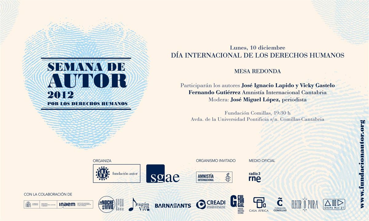 La Fundación Autor ha encontrado la "complicidad" de la Fundación Comillas para desarrollar una parte de la actividad en Cantabria. Así, el propio 10 de diciembre, el Seminario Mayor de Comillas acogerá la citada mesa redonda con el periodista musical José Miguel López (Radio 3), Fernando Gutiérrez, responsable de Comunicación de Amnistía Internacional en Cantabria, y los autores José Ignacio Lapido y Vicky Gastelo.