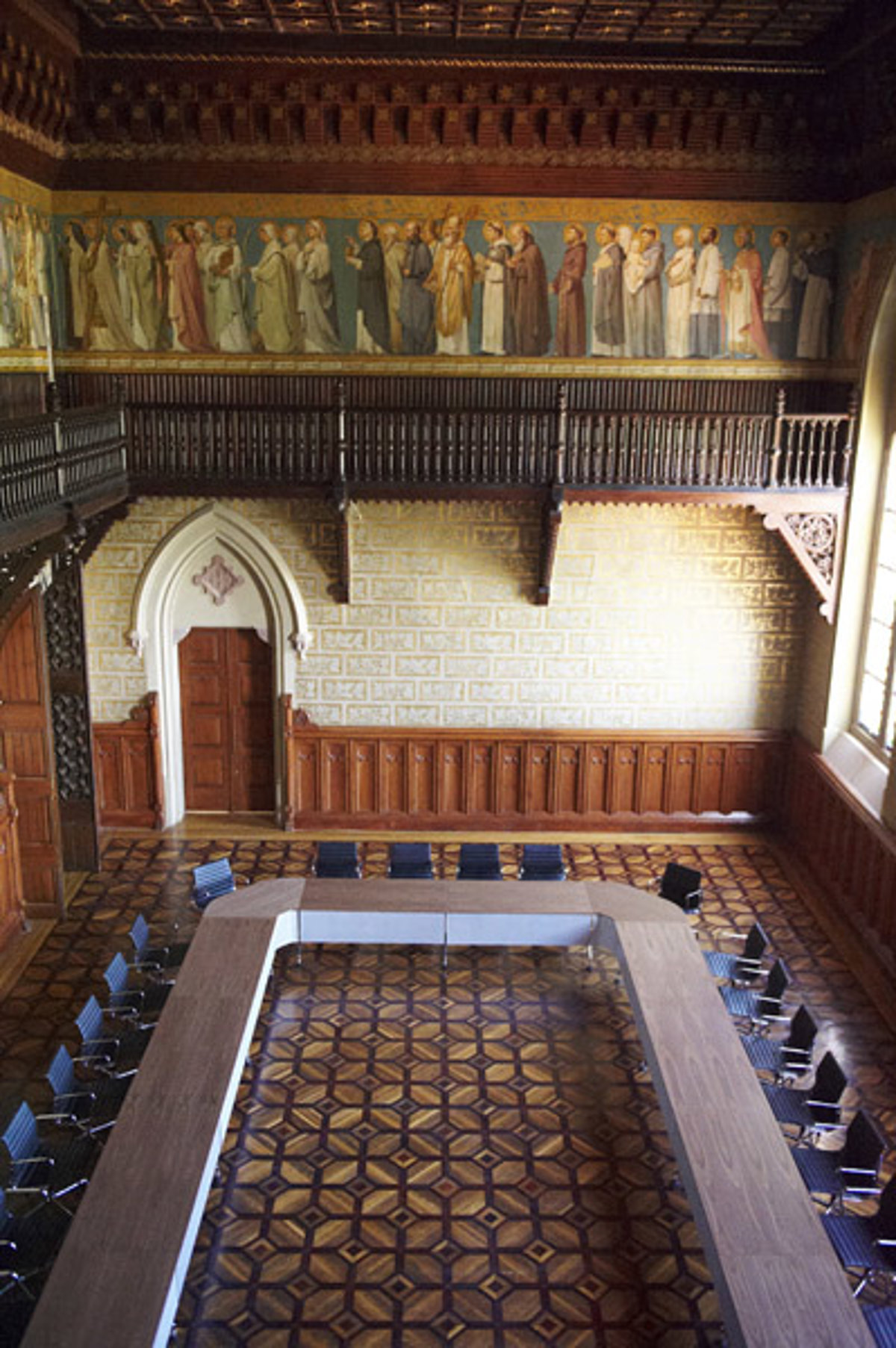 Entre estas salas nobles se ha incluido el vestíbulo, la terraza, el paraninfo, el aljibe, el claustro, la biblioteca antigua, el bestiario y la escalera.