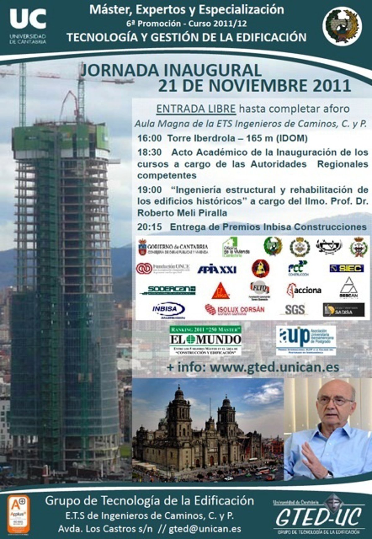 El Postgrado de Tecnología y Gestión de la Edificación de la Universidad de Cantabria comenzará próximamente su 6ª edición. Su jornada inaugural tendrá lugar el 21 de noviembre con dos ponencias técnicas.
