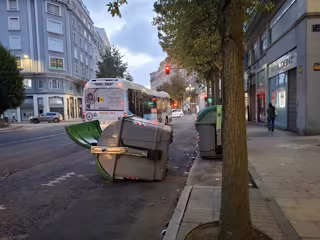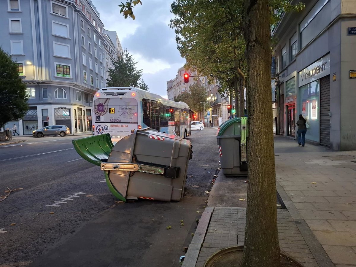 Contenedor volcado por el viento en el centro de Santander - EUROPA PRESS
