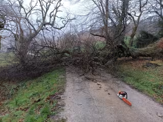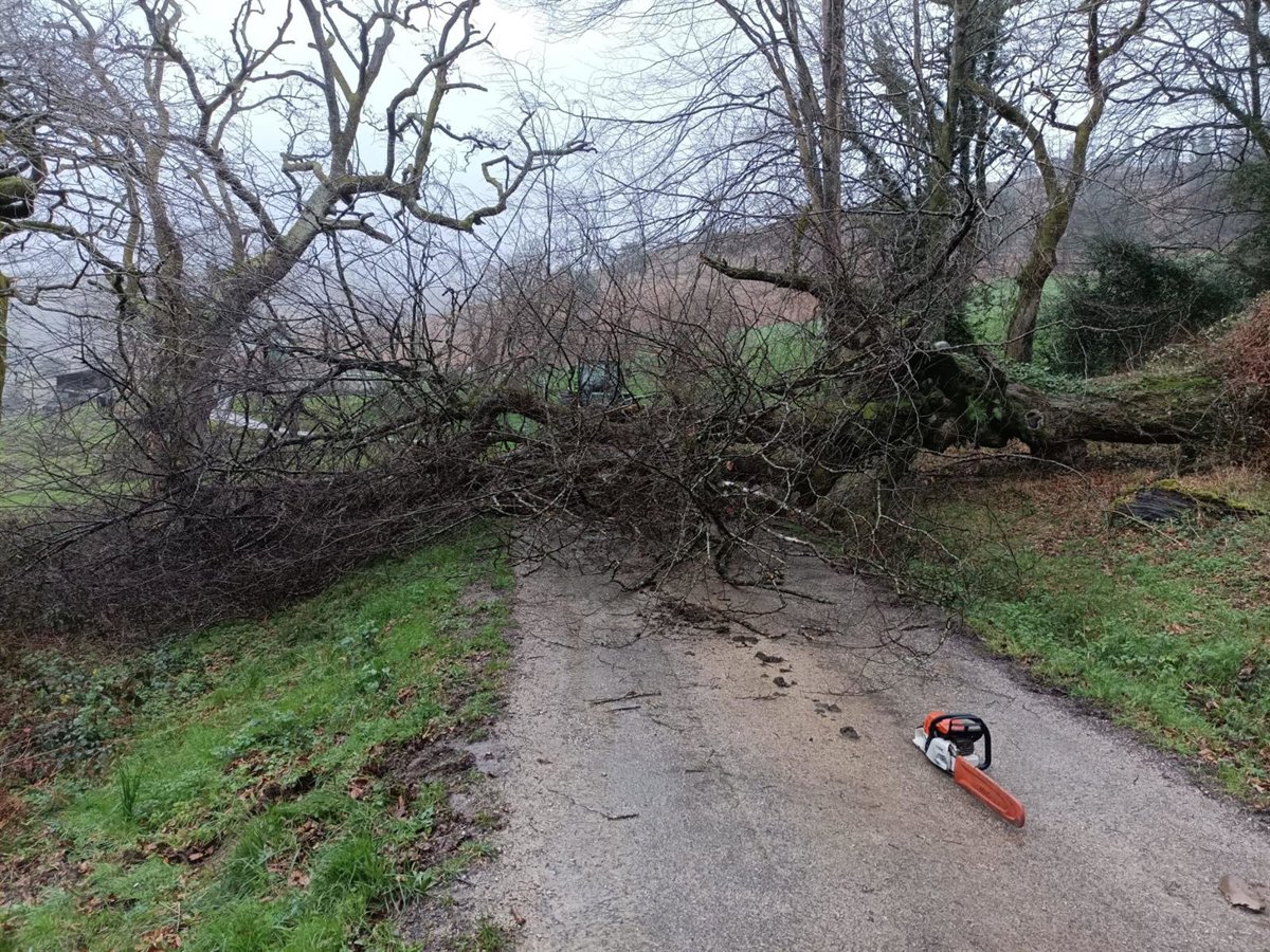 Los bomberos retiran un árbol caído que impedía la entrada a una vivienda en Esles - 112