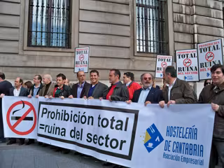 Encabezados por el presidente de la Asociación Empresarial de Hostelería de Cantabria (AEHC), Emérito Astuy, los manifestantes han permanecido por espacio de tres cuartos de hora a las puertas de la Delegación del Gobierno en Cantabria portando pancartas con los lemas 'Prohibición total = ruina del sector'. Algunos de ellos también han desplegado sus propias pancartas con mensajes como: 'No fumar mata a la hostelería' o 'Comillas no echa ni humo'.