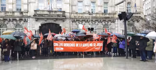Cerca de 300 personas --según la organización-- se han concentrado este domingo bajo la lluvia en la Plaza del Ayuntamiento de Santander, uniéndose así a la movilización convocada por CCOO y UGT a nivel nacional para que los derechos sociales "nos sean rehenes" de los partidos políticos.