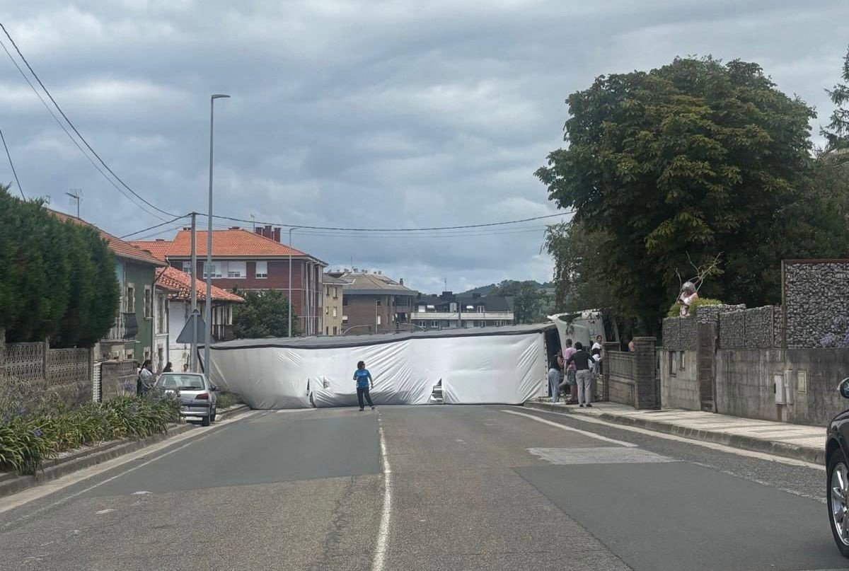 Cortada la N-611 en Requejada al volcar un camión y quedar sobre los dos carriles - AYUNTAMIENTO DE POLANCO