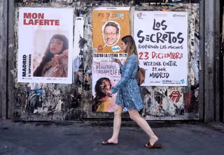 Archivo - Una jove pasando por delante por varios carteles de conciertos. - Eduardo Parra - Europa Press - Archivo