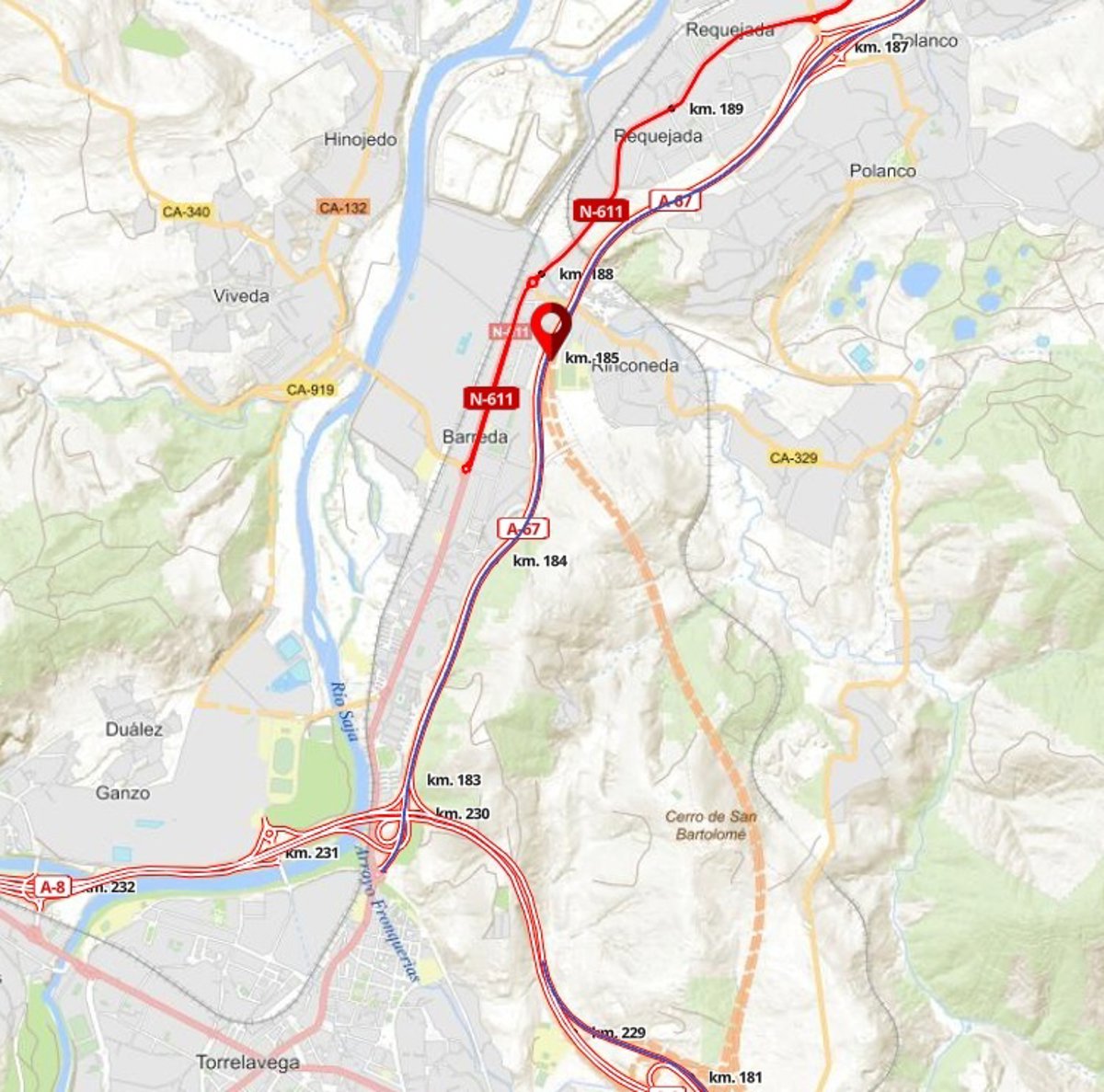 Para poder completar esta vuelta del tráfico a su calzada natural --calzada que ha sido objeto de ejecución en estos meses--, se hará necesario desde las 21.00 horas de este jueves 6 hasta las 6.00 horas del viernes 7 de febrero, realizar un corte total de los carriles de la calzada sentido Torrelavega de la A-67, entre los kilómetros 187 y 184.